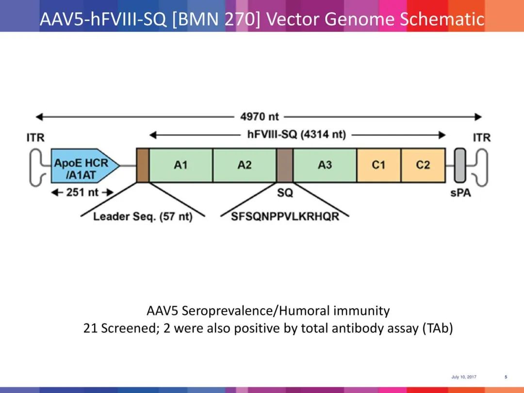 Valoctocogene roxaparvovec是一款使用AAV5病毒載體遞送表達(dá)凝血因子VIII(FVIII)轉(zhuǎn)基因的基因療法。該療法的優(yōu)勢(shì)在于可能只需要一次治療即可獲得表達(dá)FVIII的基因,因此患者不再需要長期接受預(yù)防性凝血因子注射。