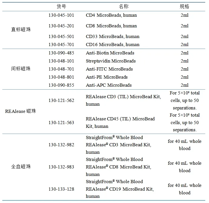 MACS磁珠主要有:直標磁珠、間標磁珠、多選磁珠,全血磁珠和REAlease磁珠。