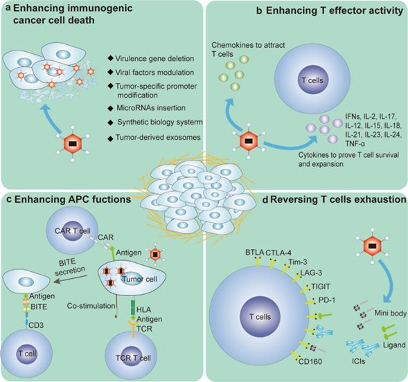 - 往病毒基因組添加GM-CSF、IL-2、IL-7、IL-12、IL-15、IFN-α、IFN-β等細(xì)胞因子基因來增強(qiáng)抗腫瘤免疫反應(yīng)。