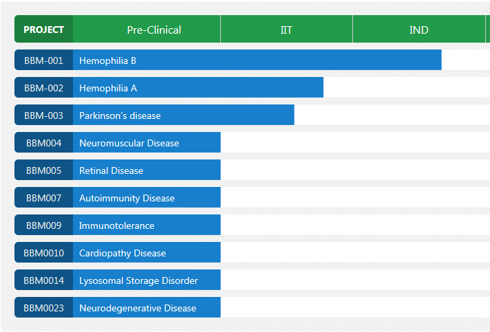 信念醫藥成立于2019年,創始人為北卡大學的肖嘯教授,也是基因治療領域權威專家。信念醫藥已經建立了豐富了研發管線,包括針對血友病、帕金森、眼病等多種適應癥的基因療法。