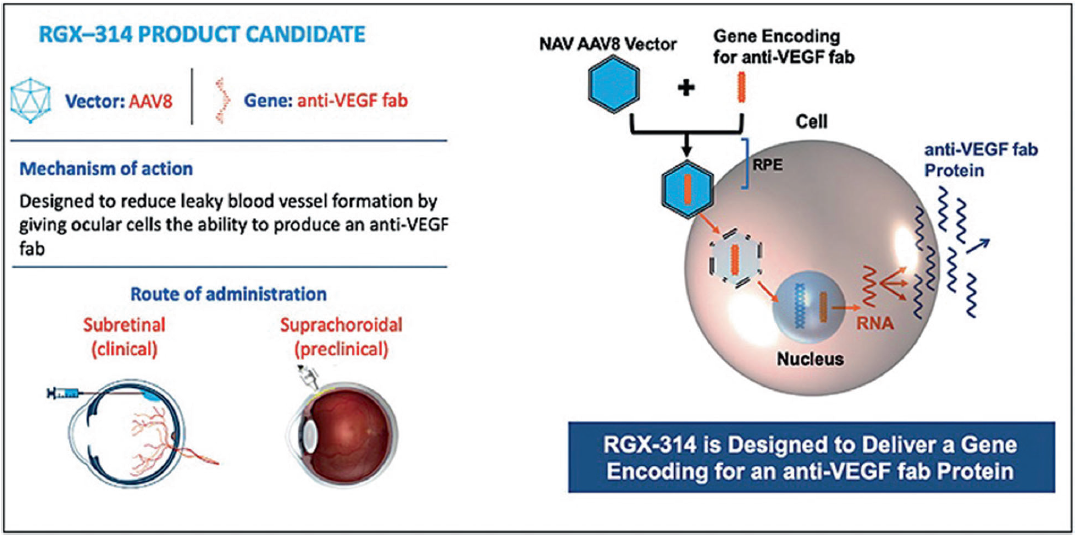 國外類似的有表達阿柏西普的ADVM-022和表達VEGF抗體的RGX-314。
