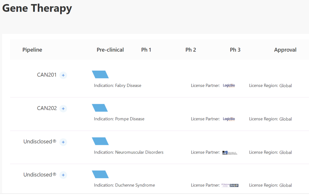 作為一家聚焦罕見病的上市公司,北海康成也在開發多款AAV基因療法。