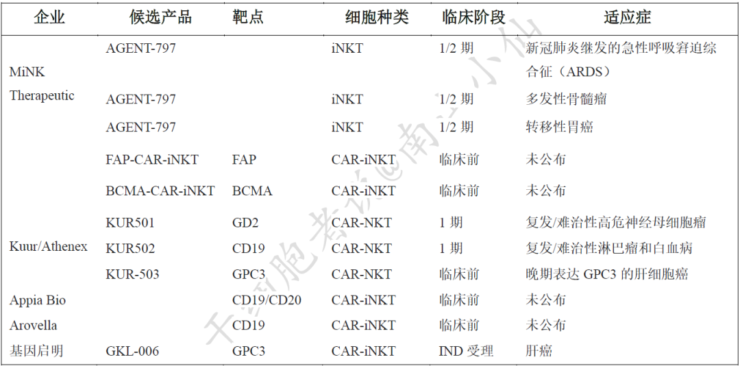 表2.開發(fā)NKT細胞治療產(chǎn)品的全球玩家